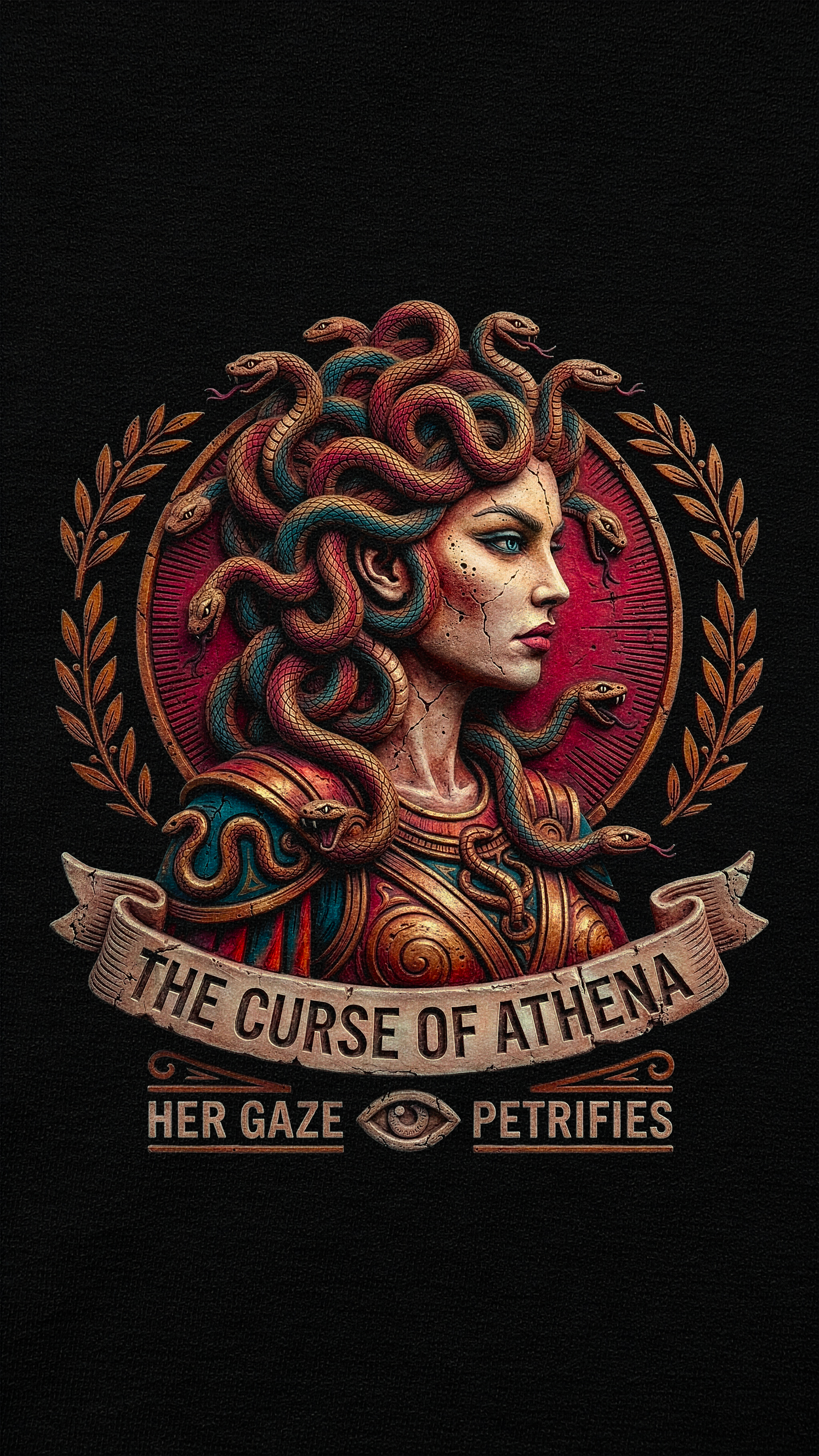 Beauty and menace, stitched together. Medusa Icon uses material texture and rich color to bring the serpentine myth to life in a front-facing composition. The felt-like detail adds softness to the image, contrasting against the dramatic lines and piercing gaze. It’s a portrait that acknowledges both the legend’s allure and its danger.